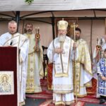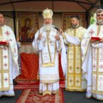 De la ora 10:00, în curtea bisericii parohiale, Părintele Mitropolit Andrei a oficiat Sfânta Liturghie, înconjurat de un sobor restrâns de clerici.